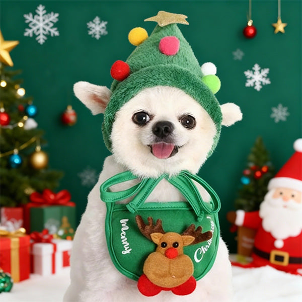 Transform your pet into a Christmas icon with this cute Tree Pom-Pom Hat and Rudolph Reindeer Bib set. Perfect for holiday photos, family gatherings, and parties, making your pet the ultimate festive star!